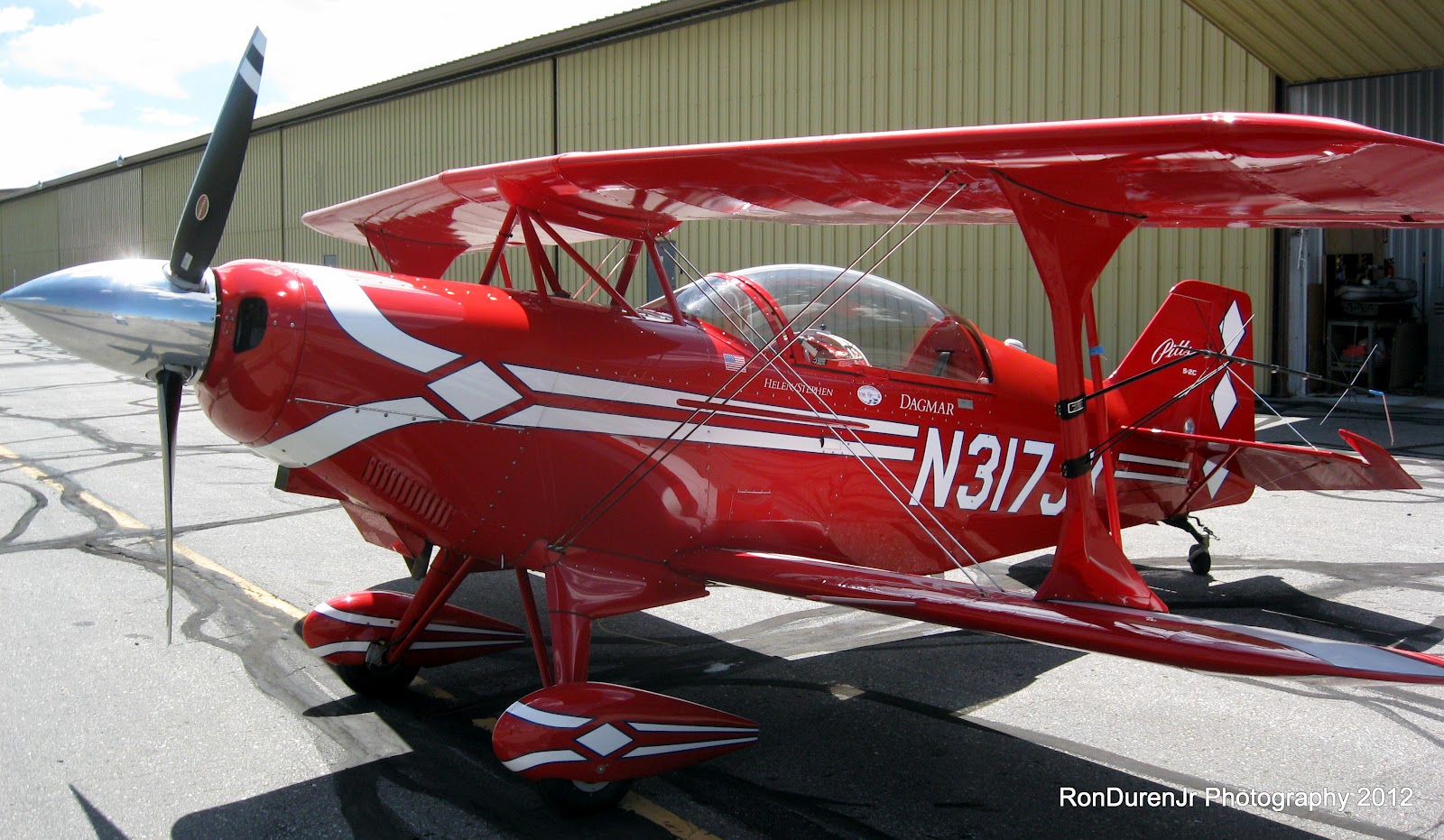 The S-2C features a quicker roll rate (300 deg/sec), improved climb rate (2900 fpm), cruises 15 mph faster (160 kts) and it's also easier to land. This particular plane, N317JK, is one of two planes owned by my instructor Dagmar Kress and is 2008 vintage. It is an immaculate airplane inside and out, its obvious Dagmar takes good care of it. The S-2C is powered by a Lycoming AEIO-540 cranking out a whopping 260hp, swinging a 3 blade Hartzell composite prop. To put that engine in perspective, the biggest engine to date that I have flown behind was 160hp...100hp less than this monster.